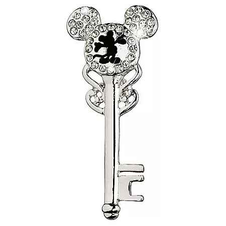 This key will turn your day into a sparkling occasion. The silhouette of Mickey is surrounded by crystals on this brooch that is part of the Disney Treasures collection that features ”Timeless designs inspired by magical Disney moments.
