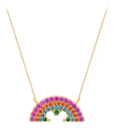 Somewhere over Mickey’s head is a dazzling rainbow. This vibrant necklace from CRISLU is crafted in sterling silver, finished with 18-karat rose gold, and features a crescent of colorful cubic zirconia with a Mickey icon cutout.