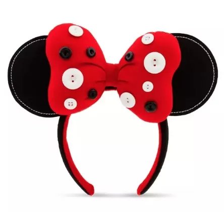 The always fashionable Minnie has things sewn up with this ear headband. The padded bow’s polka dot design is created with buttons in a charming homespun style.
