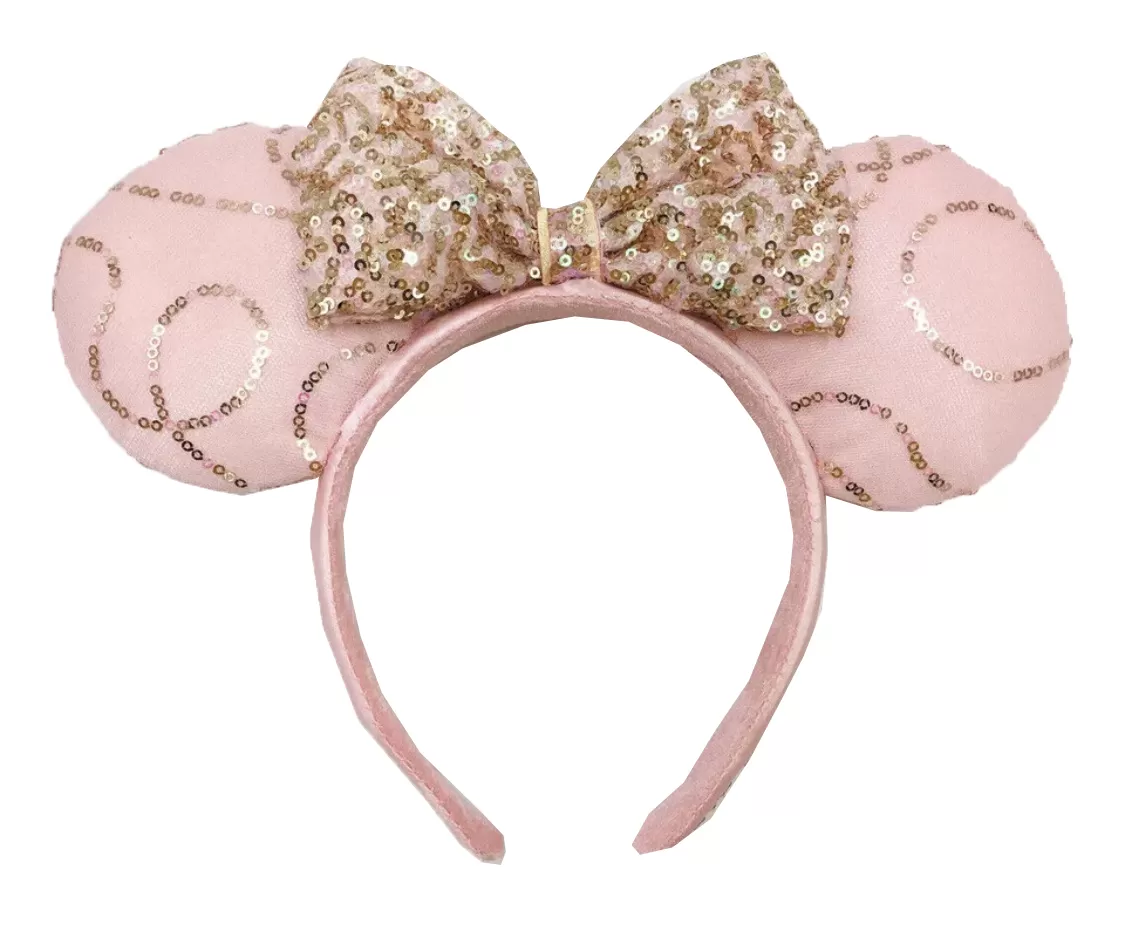 These Fantasy Pale Pink Ears Headband adore gold swirls and sequined Bow.