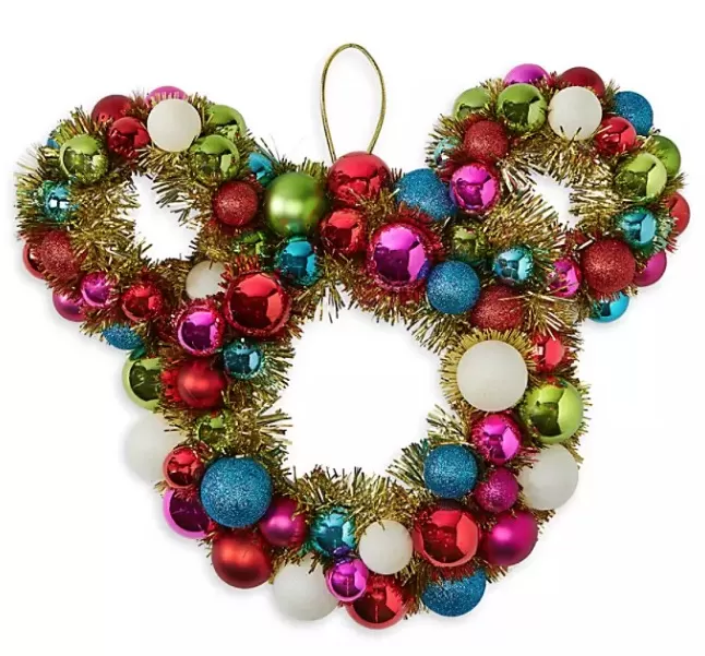 Welcome family, friends, and special guests throughout the holiday season with our glittering wreath. Made up of colorful ornaments against a background of gold tinsel, the festive flair of our Mickey icon wreath is sure to inspire jolly smiles.