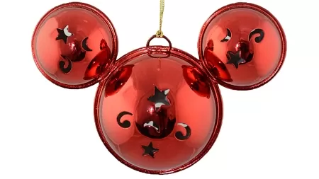 Add a magical touch this year to your Christmas Tree with this red Mickey Mouse icon Metal Ornament, with stars and moons.