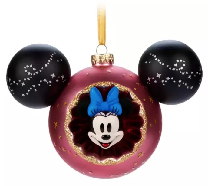 - Sculpted Minnie head attached to mouse-eared ball ornament