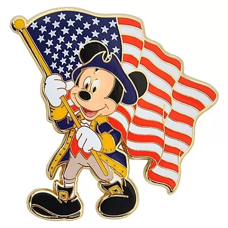 Looking very dapper in his colonial outfit, Mickey is in a patriotic mood as he waves the Stars and Stripes! This American Flag Mickey Mouse Pin makes a revolutionary addition to any Disney pin collection