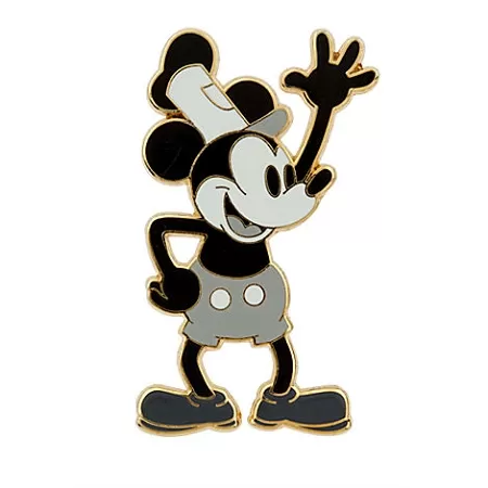 Toot your own horn after buying this charming Steamboat Willie pin for your Disney pin collection. Mickey’s breakthrough role is presented in original black and white tones on a golden cloisonné pin.