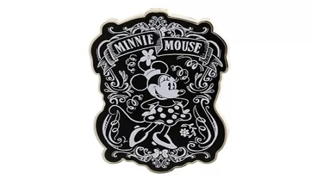 Open edition Chalk Sketch Minnie pin. This pin features a print screen element.