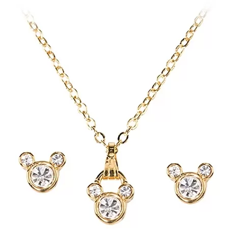 Adorn yourself in the elegance of our Crystal Mickey Mouse Necklace and Earring Set. With dazzling crystals set in gold silhouettes of Mickey, our necklace and earring set adds style to any special occasion, as well as a casual outing.