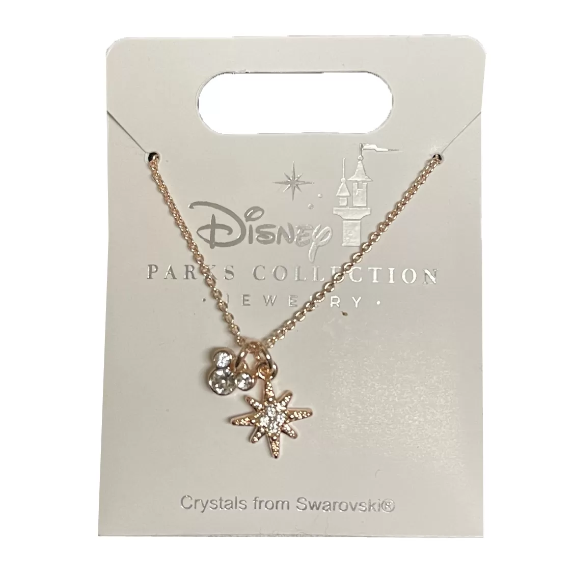 This gorgeous Rose Gold Swarovski Necklace makes a nice Elegant addition to your jewelry collection. Features a Mickey Mouse Icon with a Star charm.Â