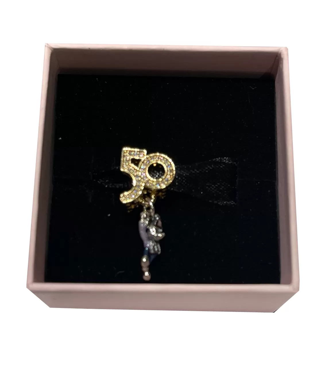 Celebrate Walt Disney World’s 50th Anniversary with this elegant Pandora Charm with Gold 50 and Mickey dangling underneath.