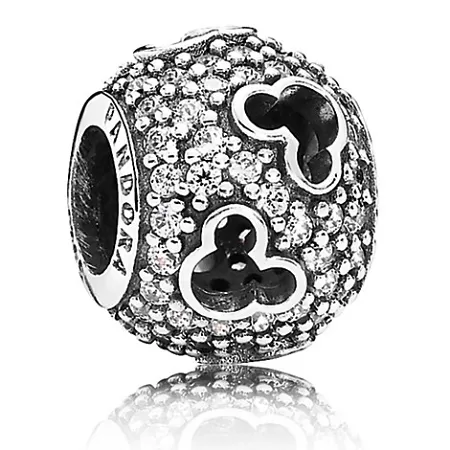 - Disney abstract charm in sterling silver with 87 pavé-set cubic zirconias and cut-out Mickey silhouettes