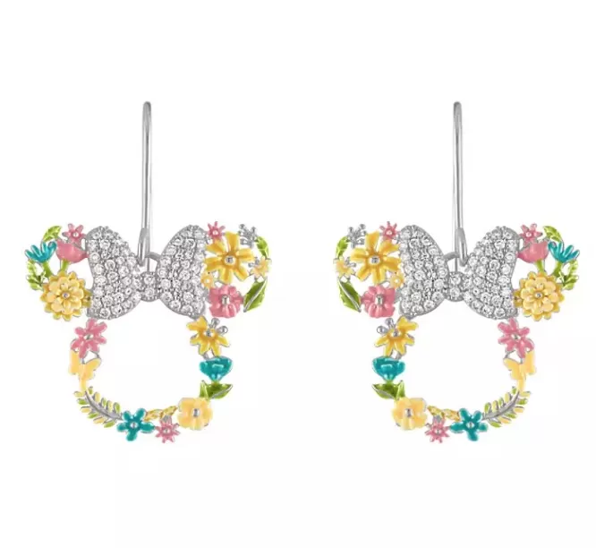 Minnie will make your day blossom with these pretty earrings by Rebecca Hook. The design features her iconic silhouette outlined in colorful enamel cloisonné flowers while her signature bow is encrusted with sparkling cubic zirconia.