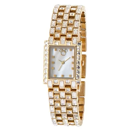 Faceted stones accent the gold band, giving this Minnie Mouse Watch its